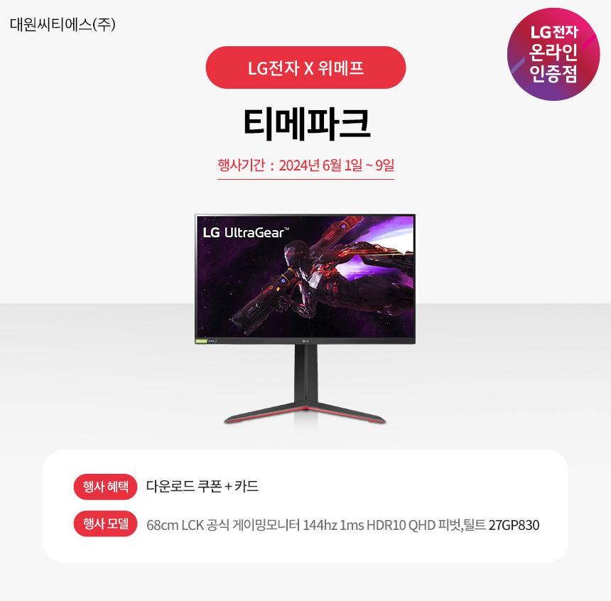 [위메프] 티메파크 LG 모니터 27GP830 프로모션 예고!
