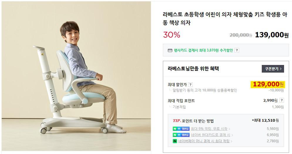 [네이버] 6-15세까지 사용하는 맞춤형 어린이의자 반짝특가 (체감가129,000원/무료배송)