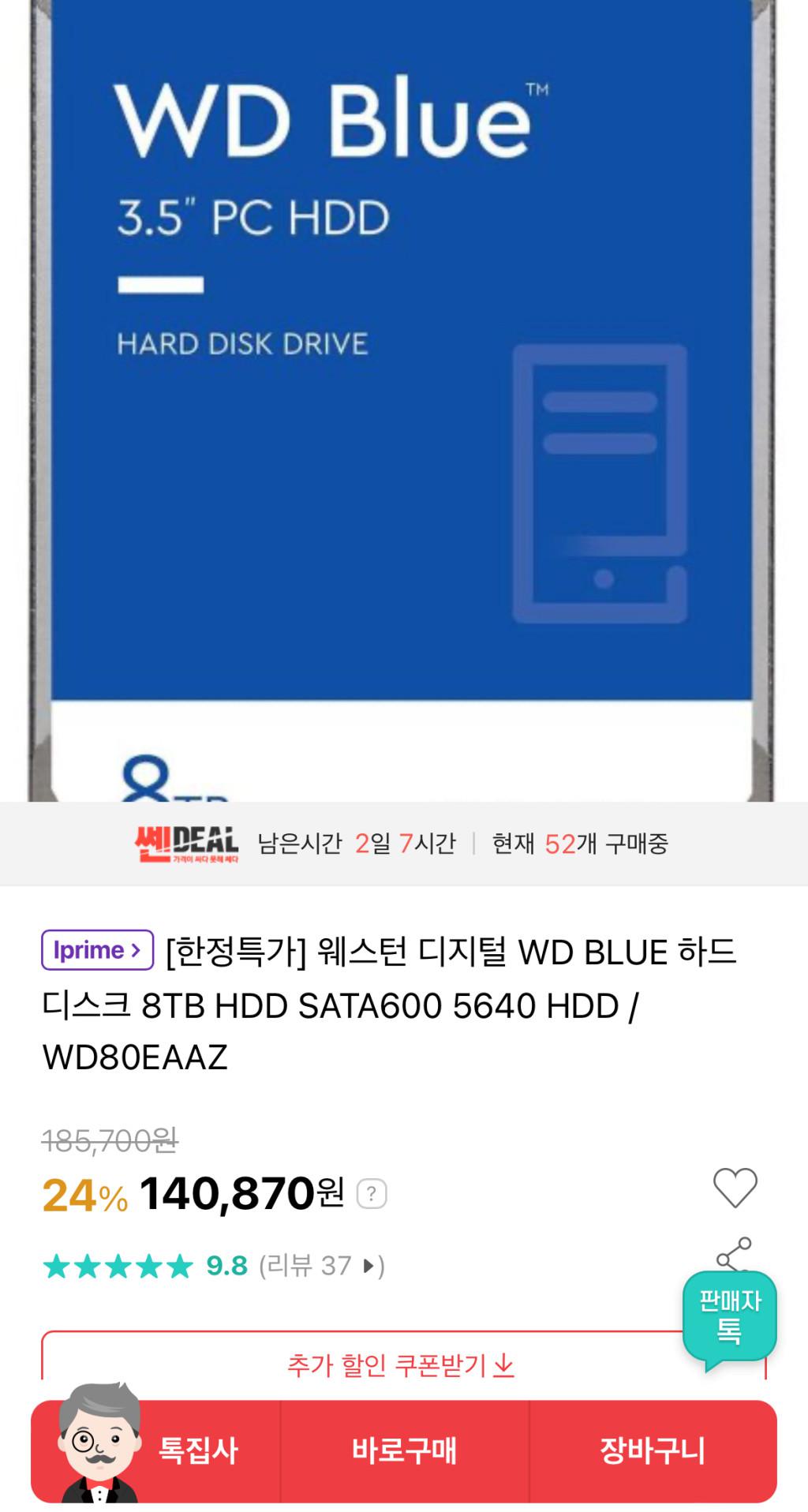 [인터파크] 웨스턴 디지털 블루 하드디스크 8TB