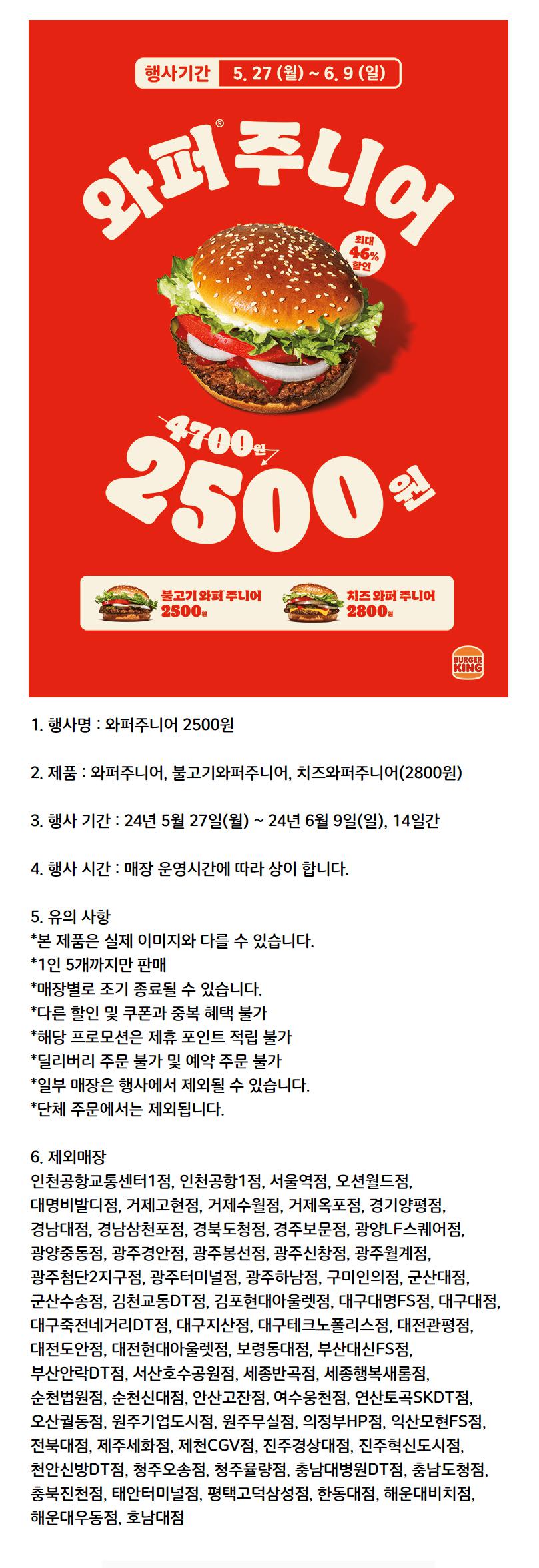 [기타] 버거킹 24년 5월 와퍼주니어 2500