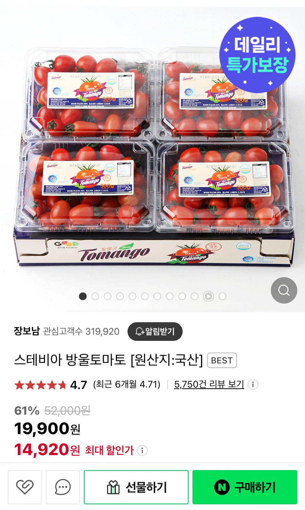 [네이버] 스테비아 대추 토망고 500g 4팩