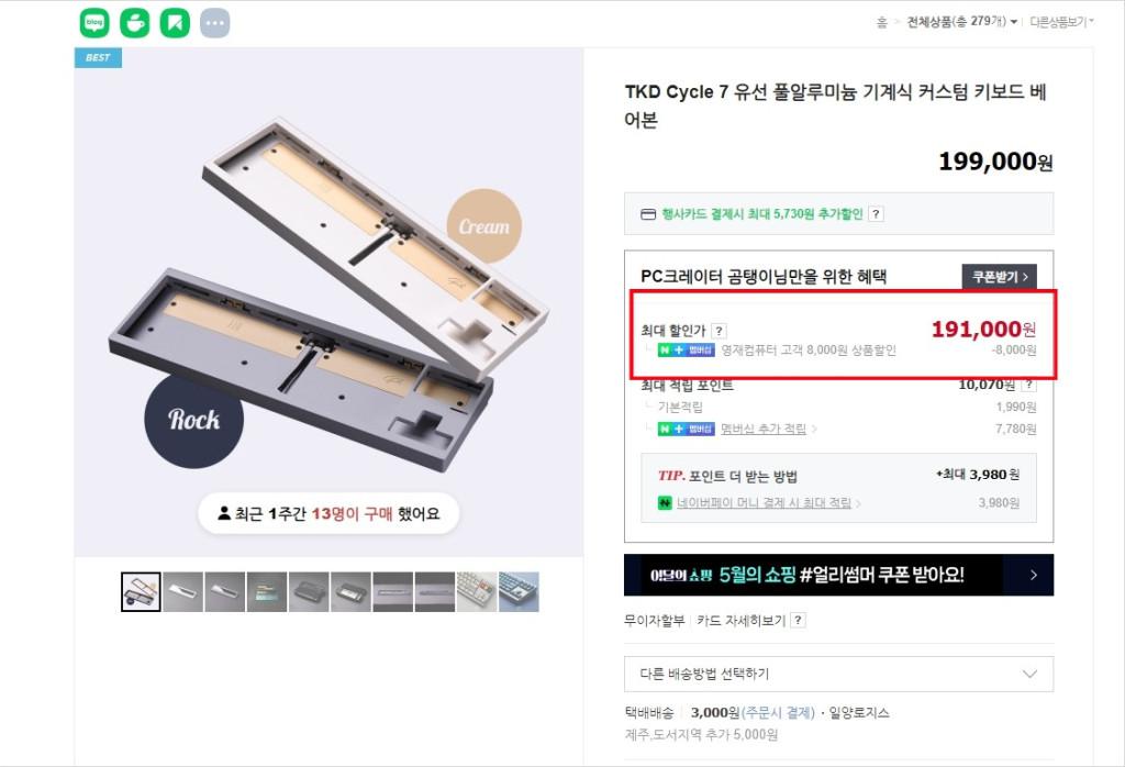 [네이버] [영재컴퓨터] TKD Cycle 7 네이버 멤버쉽 8천원 할인 적용 최대 191,000…