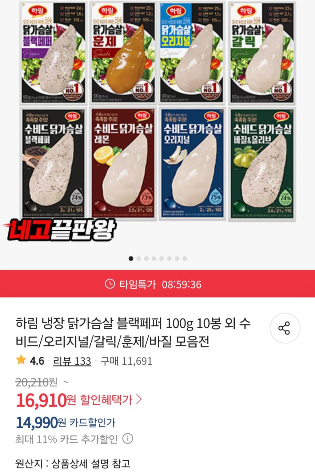 [위메프] 하림 냉장 닭가슴살 블랙페퍼 100g 10봉