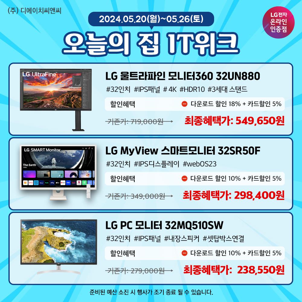 [오늘의집] LG 스마트모니터 32SR50F 외 2건 IT 브랜드위크 안내
