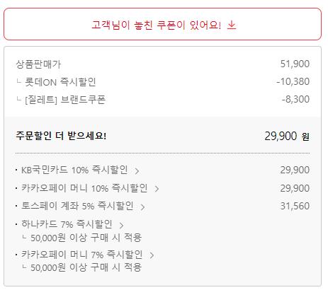 국민카드 또는 카카오페이머니로 결제시 29,900원 나옵니다.기다렸던 딜인데 가격 괜찮네요.