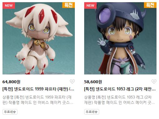 [특전] 넨도로이드 1959 파프타 (재판) / 메이드 인 어비스https://brand.naver.com/goodsmilekr/products/10163606196[특전] 넨도로이드 1053 레그 (2차 재판) / 메이드 인 어비스https://brand.naver.com/goodsmilekr/products/10163592652특전은 굿스마일 코리아에서만 제공합니다.그외 특전은 공식이 아닌 비공식 특전입니다.굿스마일 코리아는 고객 등급혜택이 없습니다.특전을 원하지 않을 경우 다른 사이트에서 구매하세요.굿스마일 코리아https://brand.naver.com/goodsmilekr/category/fc068adc735c4a4093dd9318b50c053b?cp=1굿스마일컴퍼이 by PWhttps://smartstore.naver.com/gsc_korea_dt_pw굿스마일컴퍼니 by BHhttps://smartstore.naver.com/gsc_korea_dt_bh
