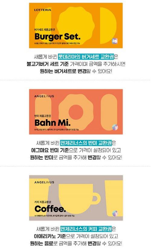 롯데리아 제품교환권 설 행사하고 있네요10장 구매시 2장 추가 증정해준다고 합니다롯데리아 제품교환권이 예전과 달리 다른 버거로도 변경 가능하네요명절 선물용으로 좋을 것 같습니다