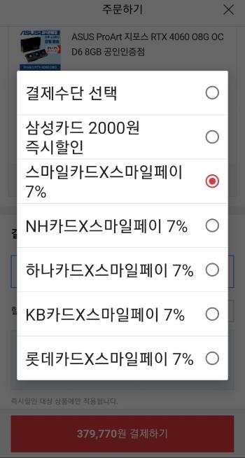 카드 할인 포함시 379,770원 결제포토후기 인증시 네이버 모바일 상품권 1만원