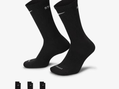 스투시 x 나이키 쿠션드 크루 삭스 블랙