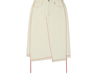 키르시 X 아식스 라인 컬러 포인트 롱 스커트 크림