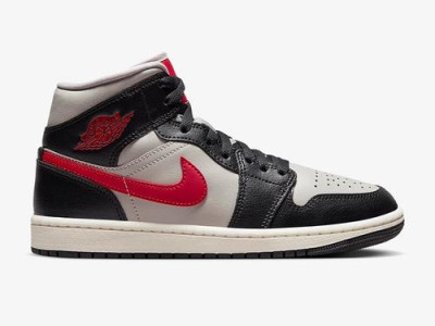 나이키 에어 조던 1 미드 블랙 그레이 짐 레드 우먼스