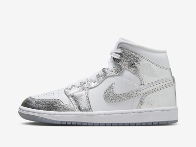 에어 조던 1 미드 우먼스 화이트 메탈릭 실버 울프 그레이