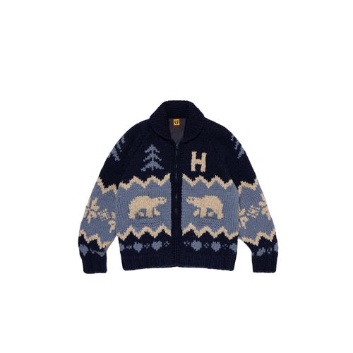 휴먼 메이드 폴라 베어 자카드 니트 스웨터 네이비