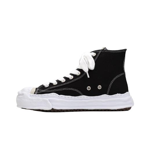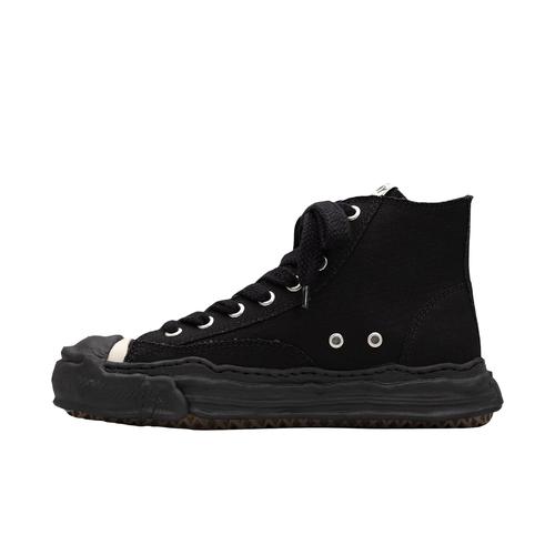 메종 미하라 야스히로 행크 OG 솔 캔버스 하이탑 스니커 블랙 블랙