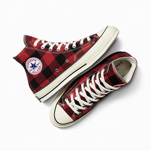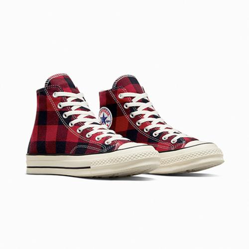 비욘드 레트로 x 컨버스 업사이클 플란넬 척 70 하이 레드 블랙