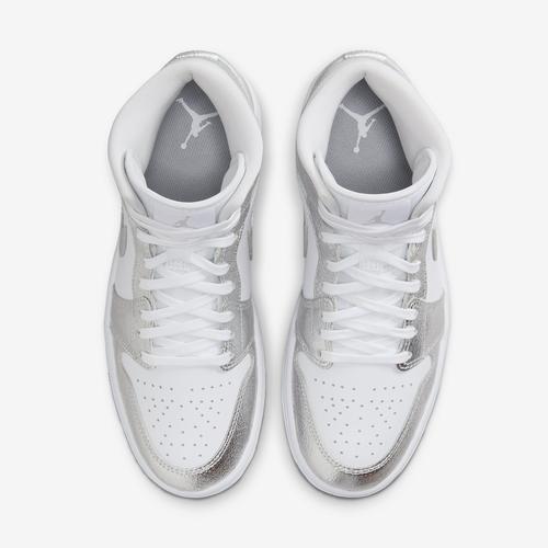 에어 조던 1 미드 우먼스 화이트 메탈릭 실버 울프 그레이