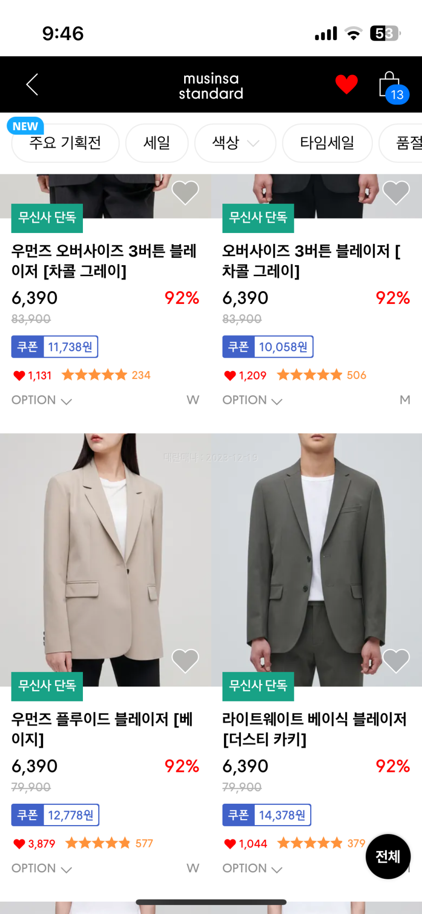 무탠다드 블레이저 슬랙스 90% 할인정보
