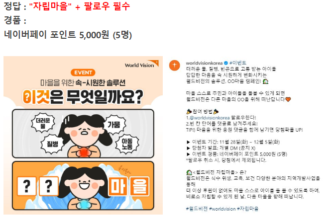 [월드비전] 자립마을 빈칸 퀴즈(경품 : 네이버페이 포인트)