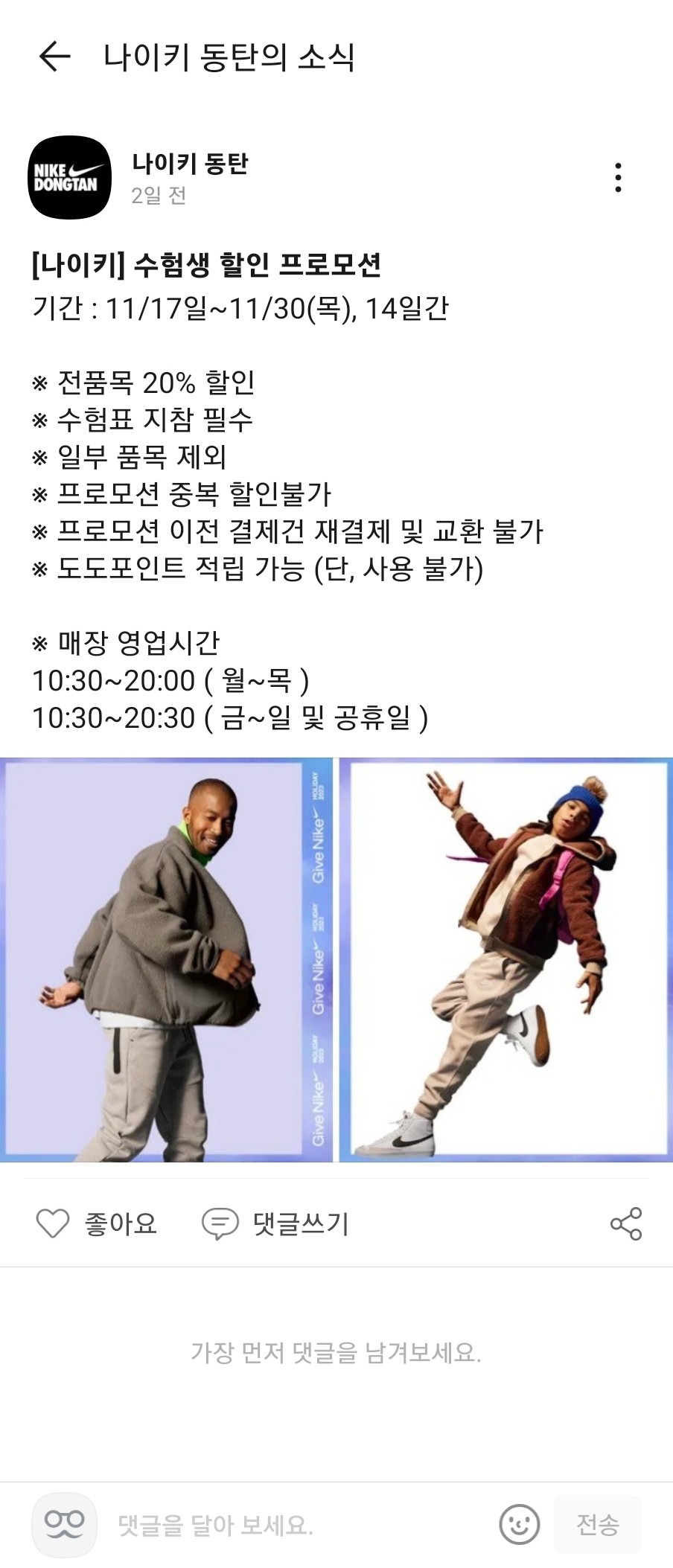[나이키 동탄] 수험생 할인 프로모션 11월 30일까지