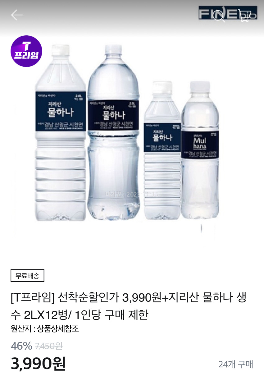 지리산 물하나 1인당 1회 구매 가능