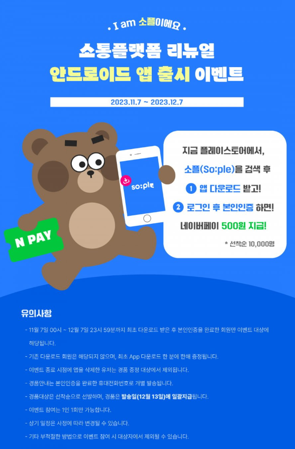 [대한상공회의소] 소플 앱 다운로드 받고 네이버페이 받자!(선착순…