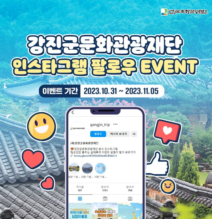 [강진군문화관광재단] 인스타 팔로우 이벤트 ( ~ 11. 5 / …