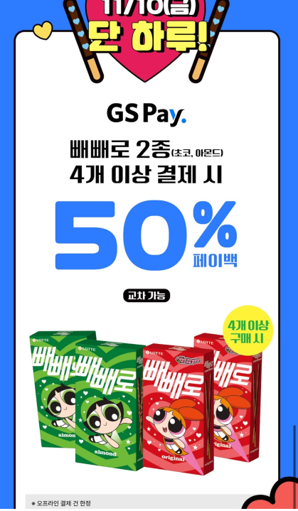 [GS25] 빼빼로데이 2+2 행사/50% 페이백