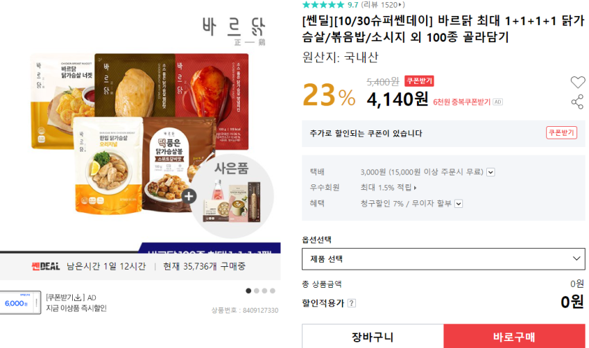 인터파크 바르닭 팩당 1547원 1.5만원 이상 무배