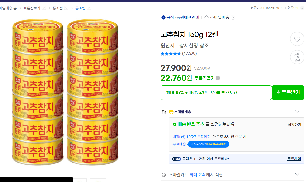 고추참치 150그람 12캔 (쿠폰적용 22760)