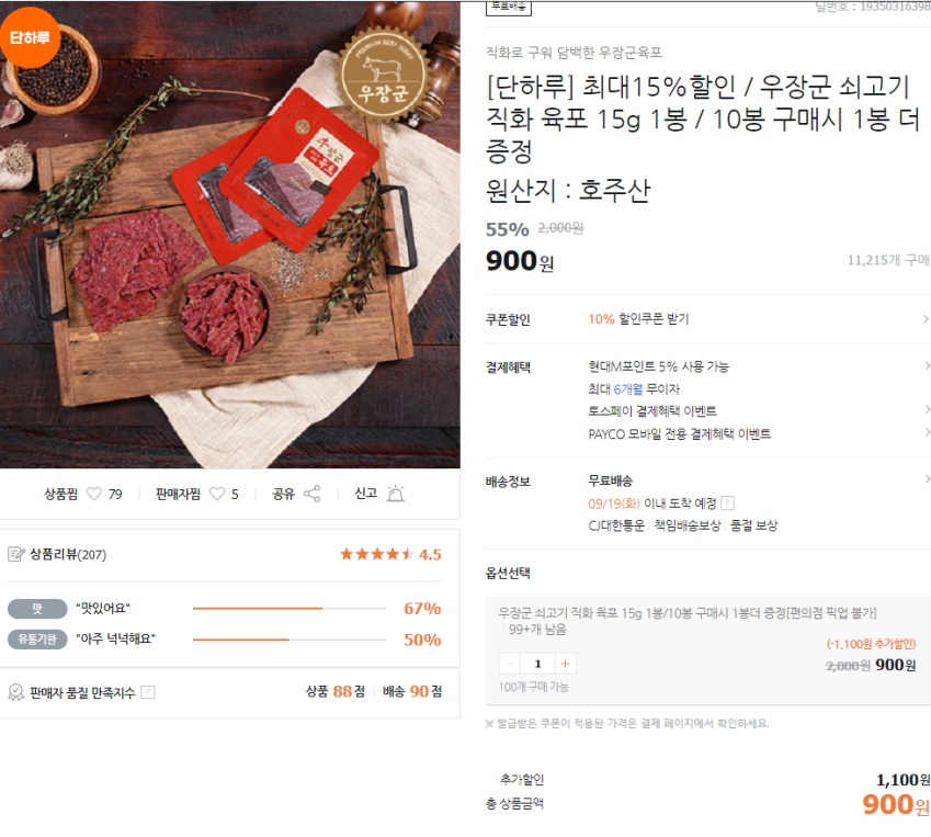 육포 15g 900원 무배