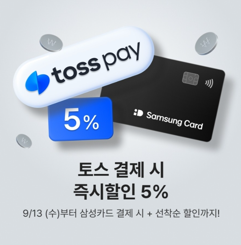 크림 토스로 결제시 즉시할인 5% 삼성카드 결제시 선착순 할인
