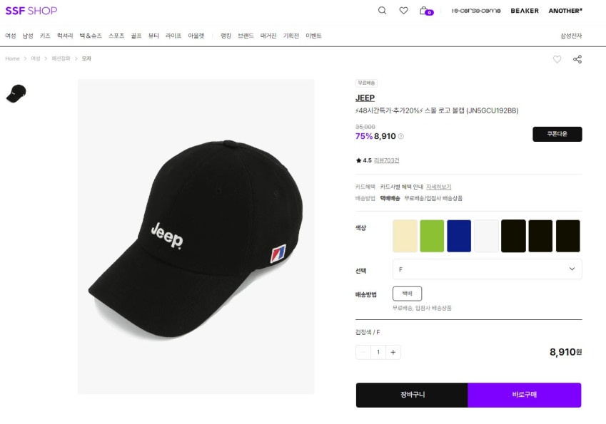 무배 단돈 7200원 지프 스몰로고 모자 블랙
