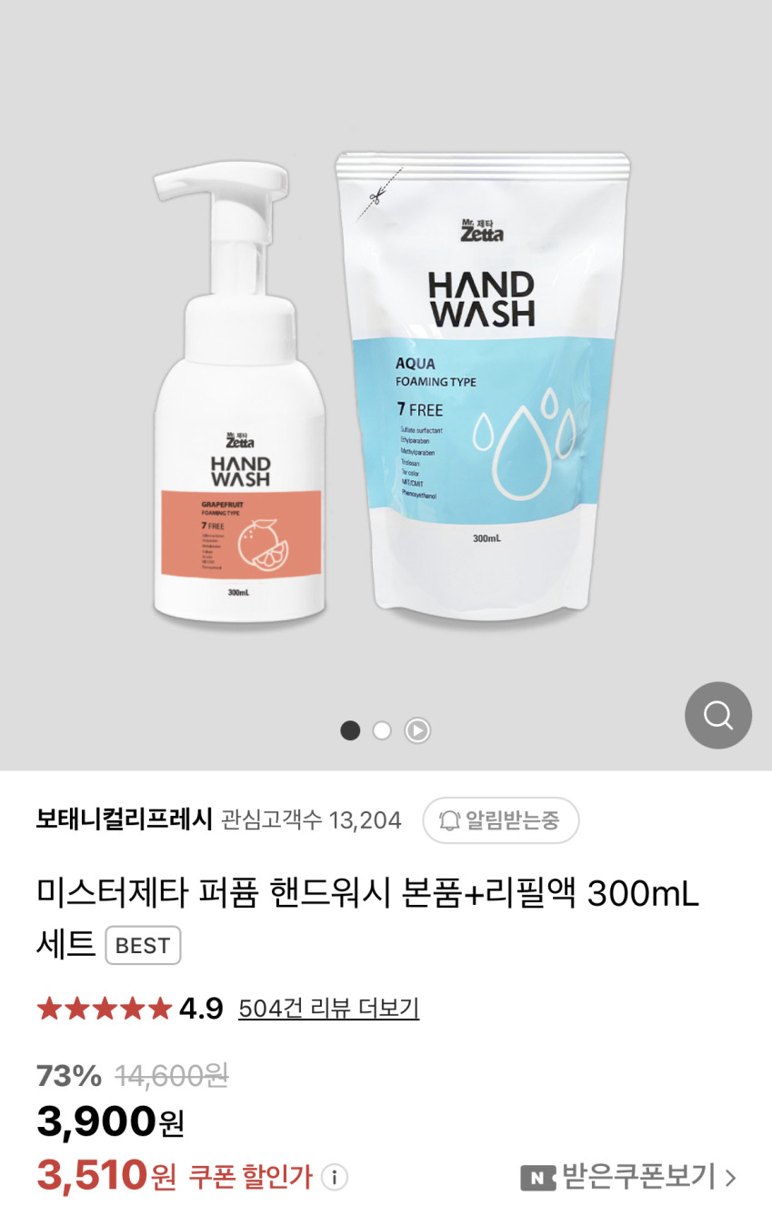 자몽향 핸드워시 본품 + 리필액 배송비 체험