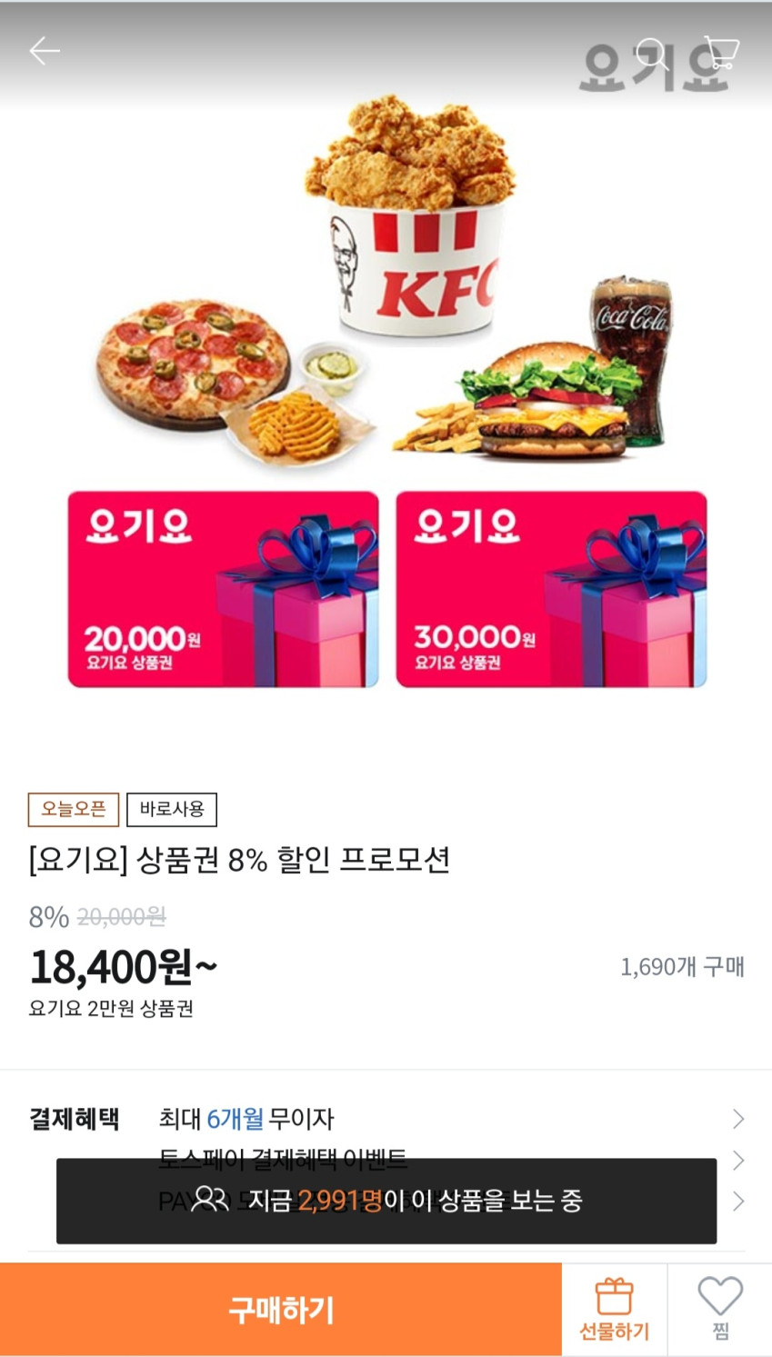 요기요 상품권 8% 할인 2,3만원 (18,400원 무배송)