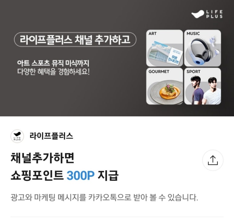 [카카오혜택쌓기]오전 1시 카톡 플친 라이프플러스 300P+해태제…