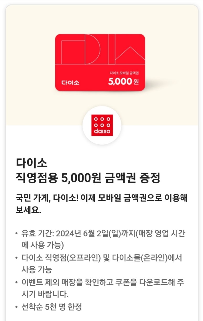 [T멤버십]9시 0데이 다이소 5천원권, 컴포즈커피, 탕후루 선착…