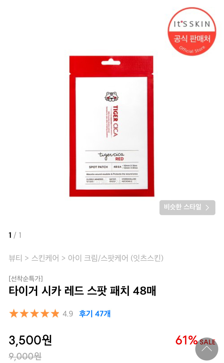 타이거 시카 레드 스팟 패치 48매 3500원!