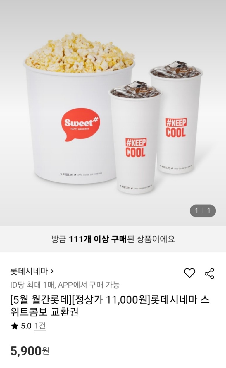 [롯데온] 롯데시네마 스위트콤보 11000 -> 5900