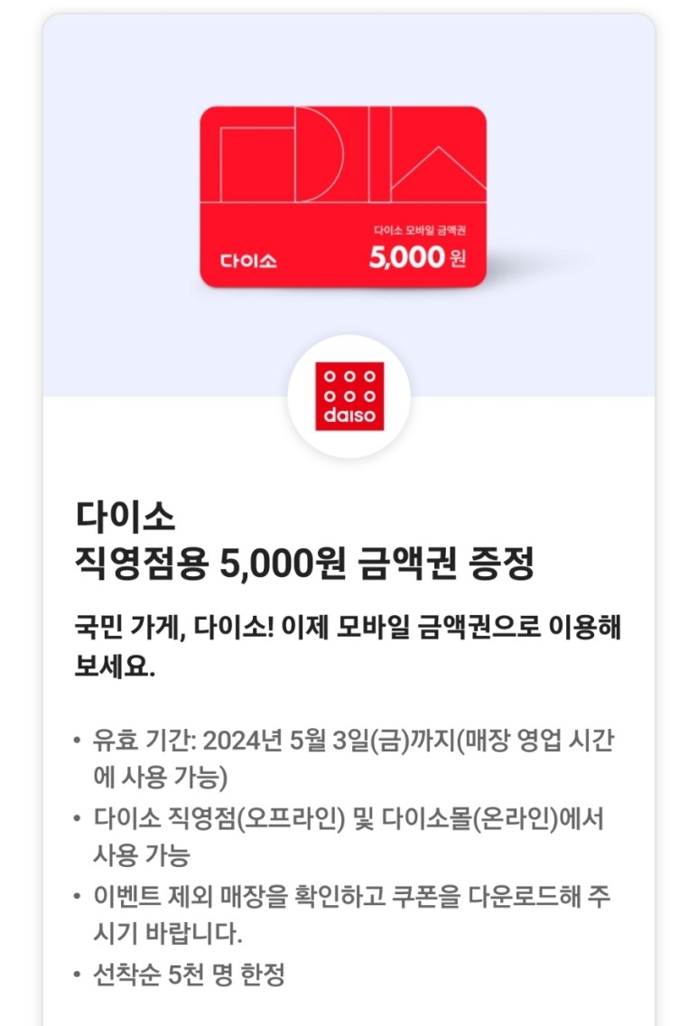[T멤버십]9시 0데이 다이소 5천원권, 컴포즈커피, 탕후루 선착…