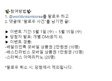 [월드비전] 팔로우 사건 이벤트(배민,배라,스벅)