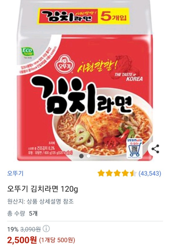 식비방어 라면 5개입 2500원딜(쿠팡와우 무배) [출처] 식비…