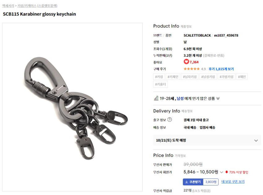 스칼렛 블랙 키체인 타임특가 7천원대 공유해요