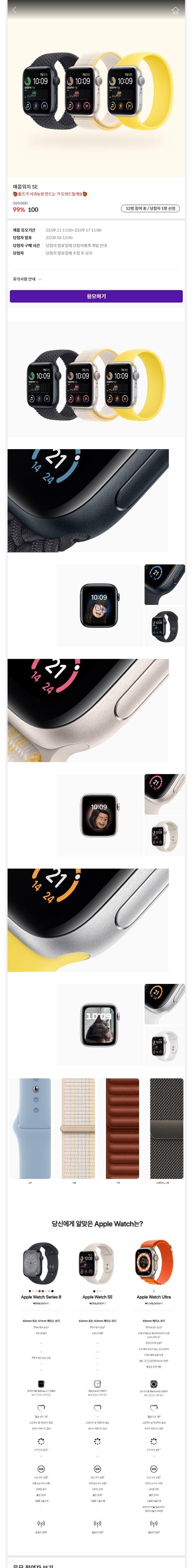당첨되면 애플워치SE 100원에 구매 가능합니다.