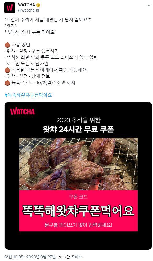 [왓챠] 추석 24시간 무료 쿠폰 코드 2