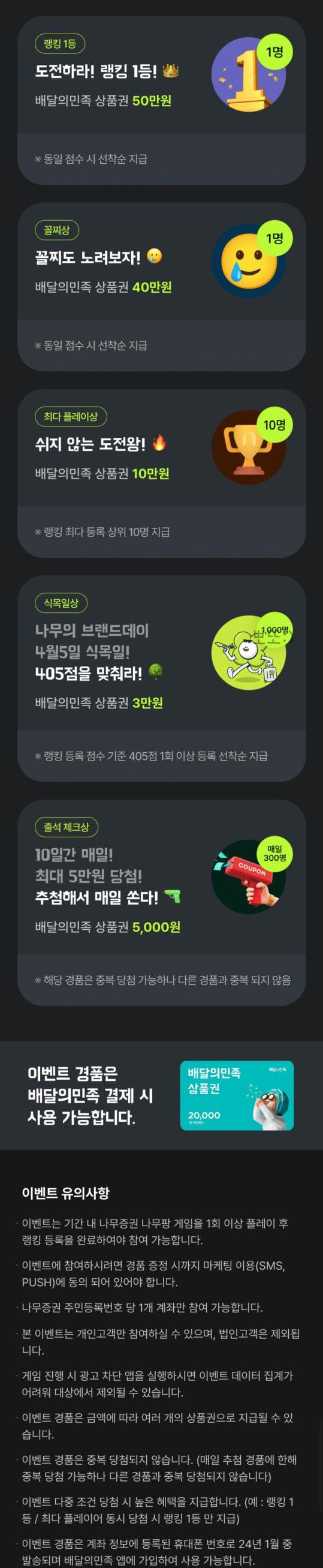 [나무증권] 나무팡 배달의 민족 최대 50만원 쿠폰 총 약 4000만원 이상 쿠폰 이벤트