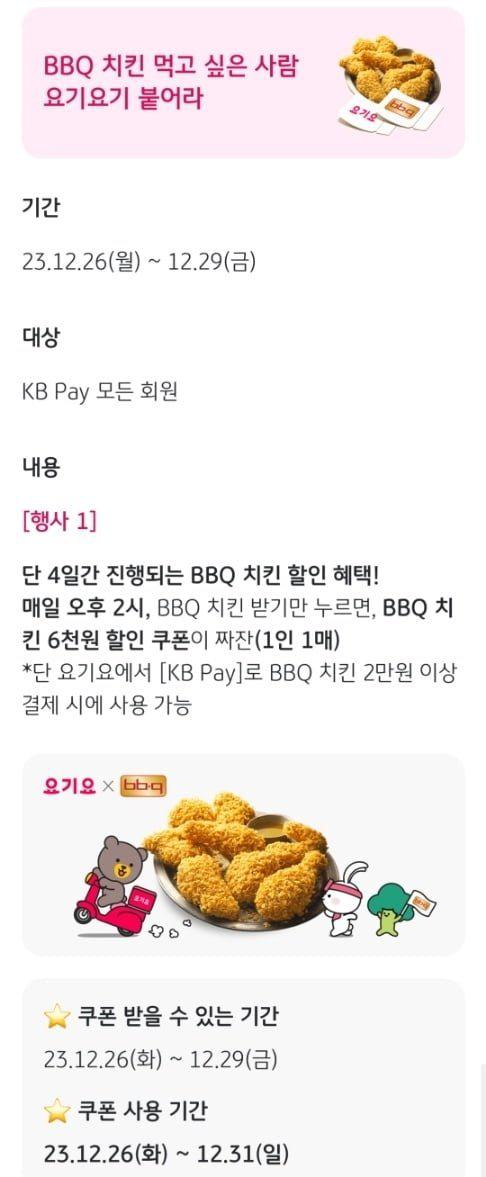 [KB페이] 요기요X비비큐 6천원할인 쿠폰