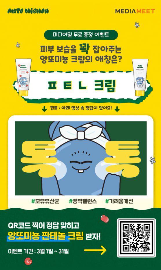 [미디어믿] 앙또미뇽 판테놀크림 무료 증정 초성퀴즈