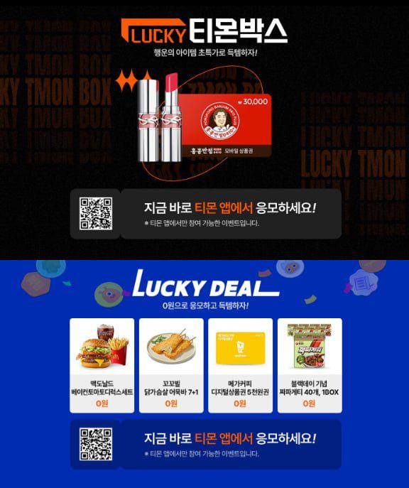 [티몬] 럭키딜 4월 2차 이벤트 맥도날드/메가커피/꼬꼬빌/짜파게티