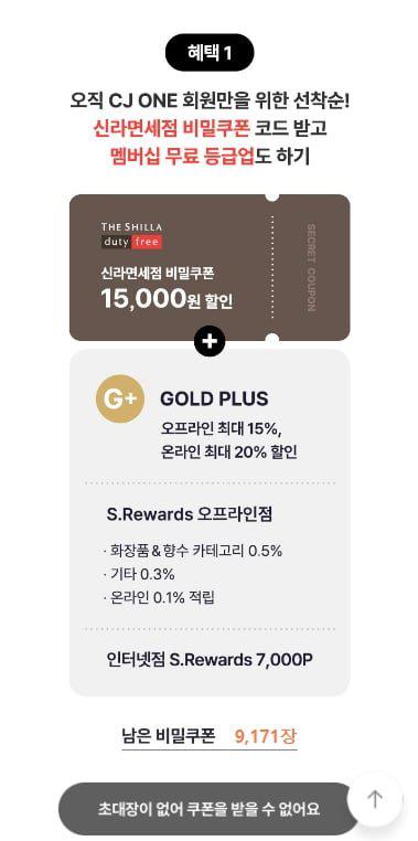 [CJ ONE]cj 신라면세점 비밀 쿠폰