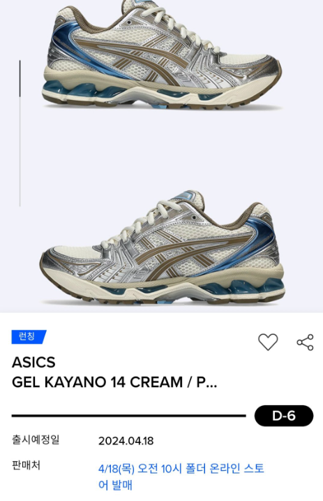 폴더 아식스 젤카야노14 cream pepper 18일 10시발매